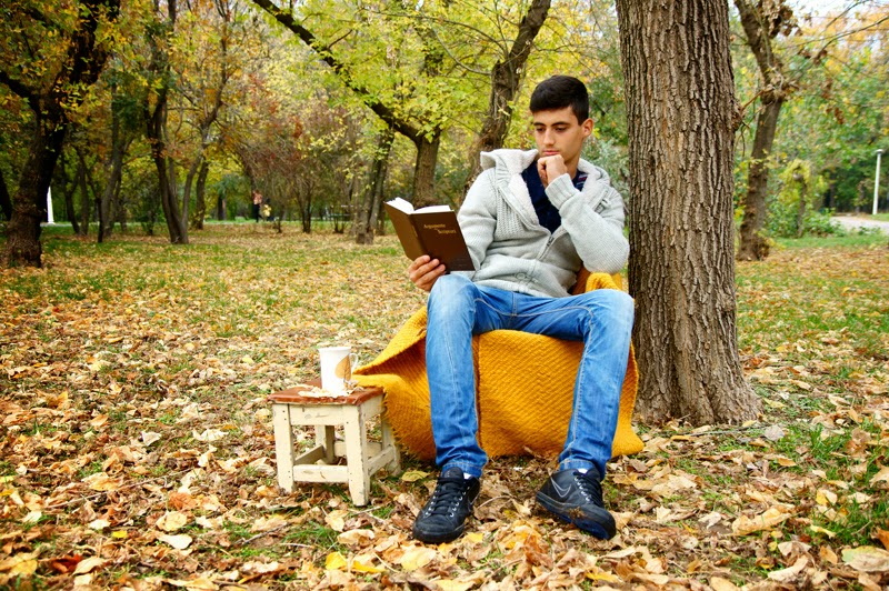 Eiii, Vali a tot asteptat si daca nimeni nu o baga in seama.... Voi nu vedeti mai, ca fata din poza este urcata in fotoliu, fara cizme in picioare? Sta cuminte acolo si citeste? Gata. S-a descaltat si s-a cocotat in scaun. Necazul e ca noi nu avem decat un prapadit de scaun de camping peste care am pus si noi ceva orange. Ca de, trebuie sa fie in ton cu toamna. Asa a zis Danica.