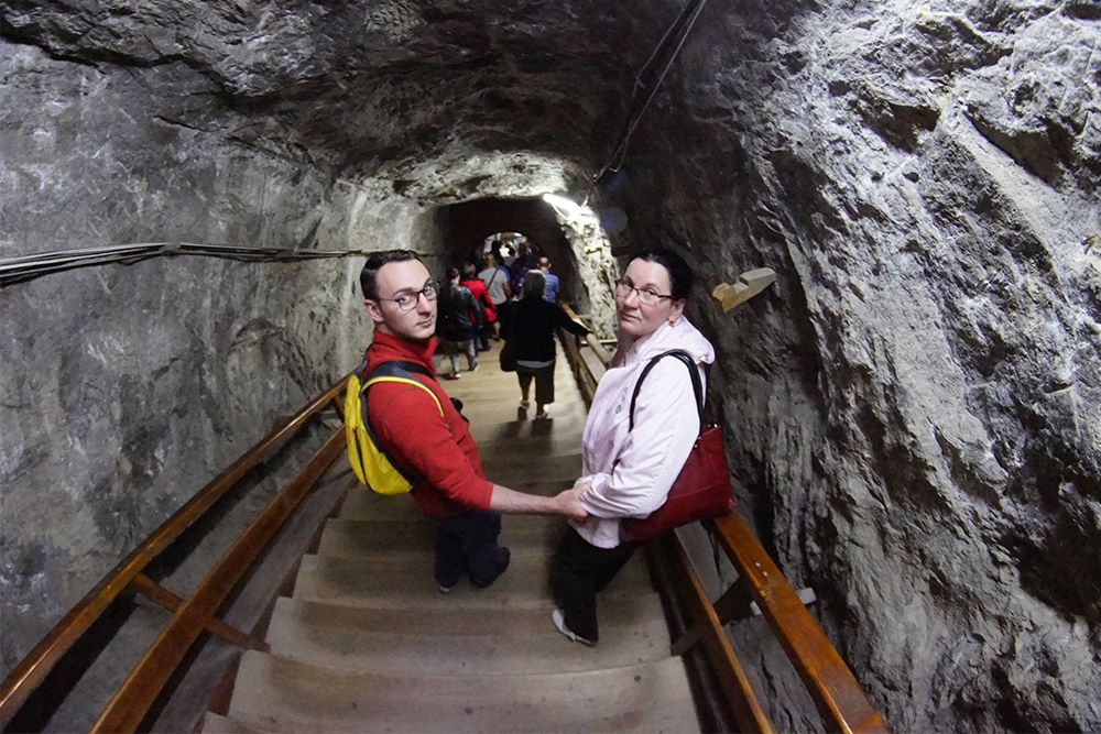 Nu am făcut prea multe cercetări despre salina Praid, dar am auzit de la mulți oameni că ar fi frumos înăuntru. Asta m-a și îndemnat să-i fac o vizită. După ce se intră o bună bucată din drum cu un autobuz cu burduf, se mai coboară câteva trepte pe jos.
